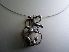 Vznikají tak šperky, které vyrábím z bezolovnatého cínu, s přídavkem stříbra dle norem. Velmi mne oslovují obyčejné kameny, mám ráda jejich rozmanitost, jejich řeč...Někdy je nechávám promlouvat, jindy kombinuji s malbou.