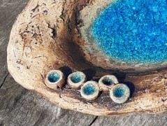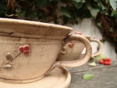 S "hlínou" pracujeme hezky ručně, vypalujeme ji na vysokou teplotu 1150 °C a proto je naše nádobí pevné a odolné. Můžete ho třeba strčit do myčky či trouby, ale hlavně z něj mlsat dobroty!