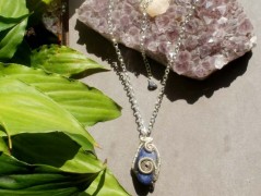Moje oblíbené materiály jsou kameny (polodrahokamy) a kov (drátky, kovové komponenty). Baví mě jak klasické ketlování, tak i drátování, tepání a v poslední době jsem zkusila z drátků i háčkovat.