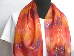 Welcome to my art gallery where I offer you self-designed art on natural silk. Professional dyes I use are of a high quality, fixed in steam so that silk keeps its natural smoothness. Each item is washed and ironed after fixing. Will be delivered to you with a certificate of originality and istructions for use in English, Czech, German and Russian (in Spanish upon request).