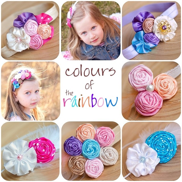 různé čelenky, s květinou i mašlí, bohaté saténové květiny