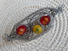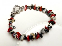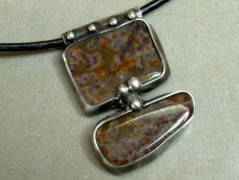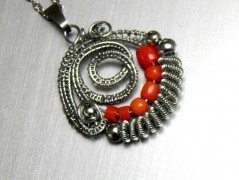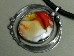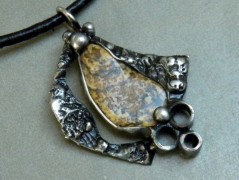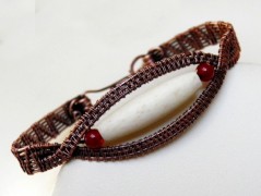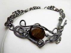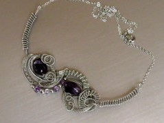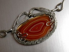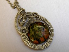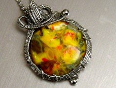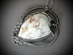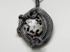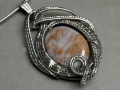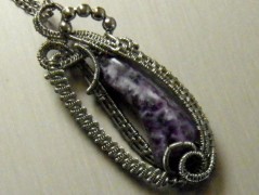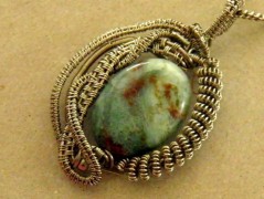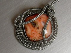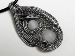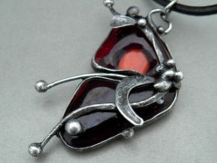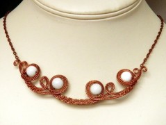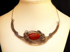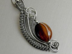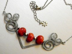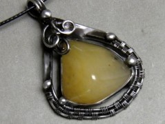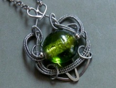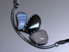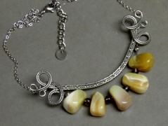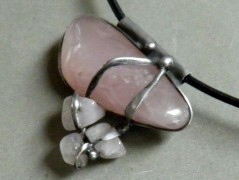 hlavně šperky, vyrobené náročnou technikou wire-wrapping, převážně z nerezového drátu. Ušlechtilý nerez je atestovaný, netečný, stálobarevný materiál. Neodírá se, nešpiní, neoxiduje, nemění svou barvu. Vyhovuje většině alergiků (podobně jako chirurgický drát - osteofix) a díky své tvrdosti odolá i běžnému dennímu zacházení. Ve srovnání se stříbrem je nesrovnatelně pevnější, výborně odolává mechanickému poškození, je tvarově stálý a jeho životnost je velmi dlouhá. Nevyžaduje další údržbu. Běžné nečistoty můžete očistit jemným kartáčkem a vodou se saponátem. V kombinaci s pečlivým zpracováním jde o šperk, který výborně odolává mechanickému poškození, je tvarově stálý a jeho životnost je velmi dlouhá. Vydrží Vám krásný i více generací. Používám do nich minerály a vlastnoručně vyráběná fussingová skla, která zaručují (díky technice výroby) šperku naprostou jedinečnost.