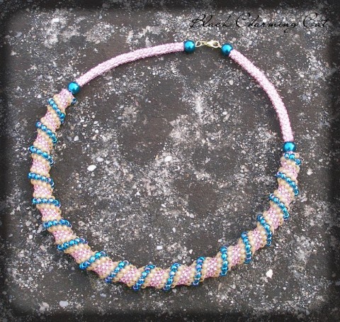 * náhrdelník z růžového žlutého a tyrkysového rokajlu a voskových perel