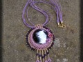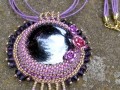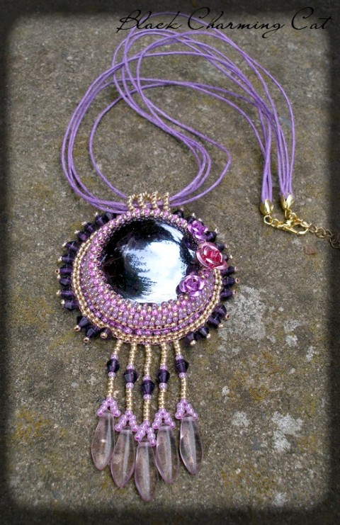 * skleněný kabošon fialové barvy s bílou šmouhou