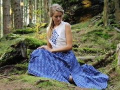 Od roku 2013 se aktivně věnuji i ručnímu vyšívání a šití hanáckých krojů. Láska k folkloru mě životem provází i po opuštění folklorního tanečního souboru. V následujících letech jsem vytvořila ručně vyšívanou kolekci taštiček s hanáckými ornamenty, která zažila nečekaný úspěch. Vyšívání se stalo součástí mého života a nápad vdechnout folklorní ráz i do běžného oblečení na sebe nedal dlouho čekat. Od roku 2016 se věnuji zakázkovému šití svatebních šatů.