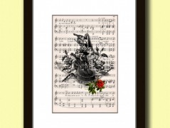 Starý notový papír pocházejicí z doby kolem roku 1900 a na něm kresba ze stejného období nebo ještě starší. Speciálně upravená pro Vás a vytištěna moderní technologií. K tisku je použit archivační inkoust, který je odolný proti vodě, rozmazání a vyblednutí.