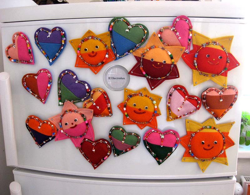 na všecky ploché plsťáčky, to jsou hvězdičky, sluníčka, srdíčka a motýlci, lze přidělat magnetky, věcičky jsou to lehoučké....