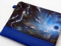 Taštička/kabelka s obrázkem vesmíru. Doplnila jsem ji modrou koženkou..